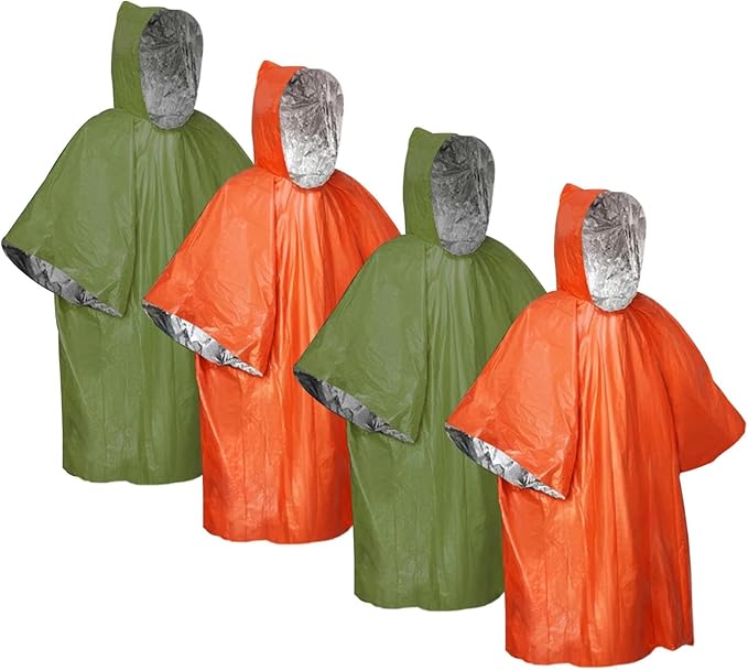 Ponczo survivalowe termiczne (4 szt.) — dwustronne, z kapturem, wodoodporne i wiatroszczelne