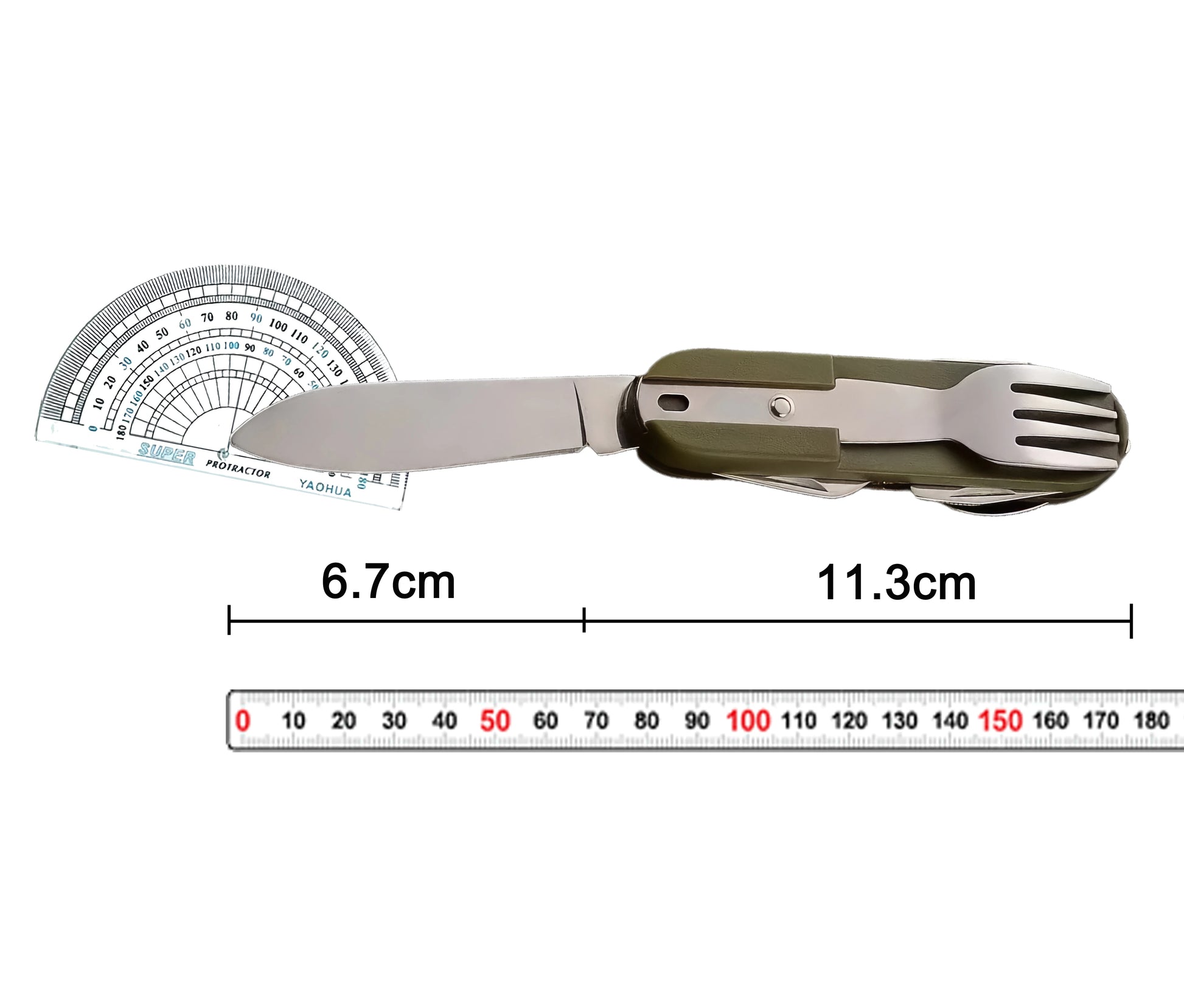 | Funkcje | Nóż, widelec, łyżka, otwieracz do butelek, otwieracz do konserw, korkociąg, narzędzie pomocnicze |